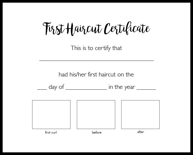 First Haircut Certificate Printable Certificate